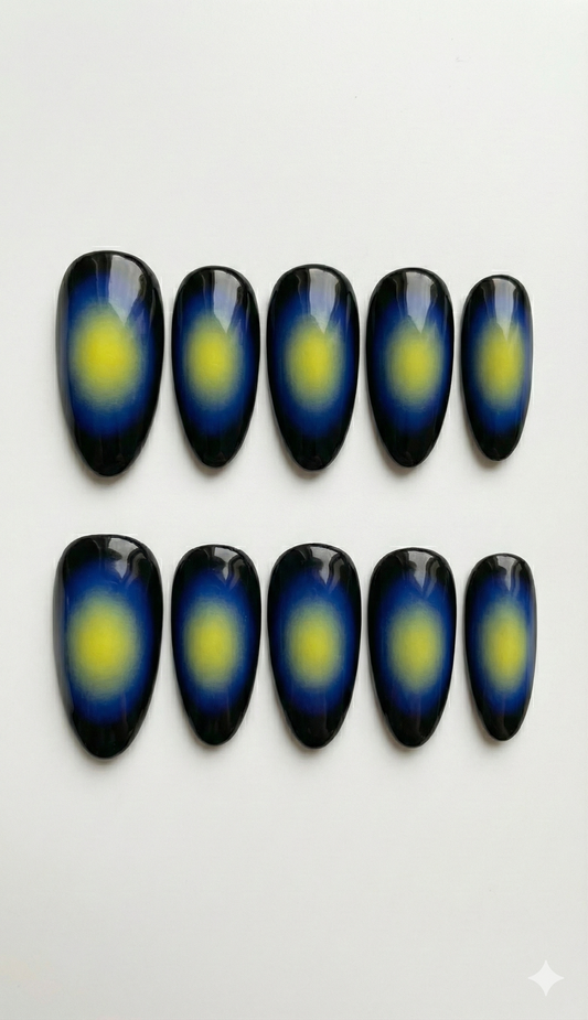 Aura Airbrush Press On Nails - Black Blue Neon Yellow Ombre - Thermal Heat Map Effect - Y2K Rave Festival - Reusable Custom Size - Custom Size Set - PN251102