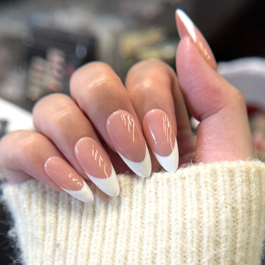 French Tip Press On Nails - Nude Pink Handmade Nails - Luxury Old Money Look Nails - Classic White Tip Press Ons - Custom Size Set - NM233004