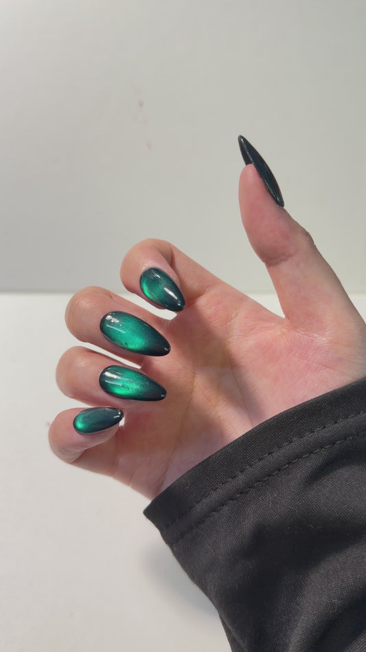 Emerald Green Cat Eye Press On Nails - Party Nails - Night Out Nails - Handmade Gel Nails - Magnetic Shimmer - Custom Size Set - NM233020