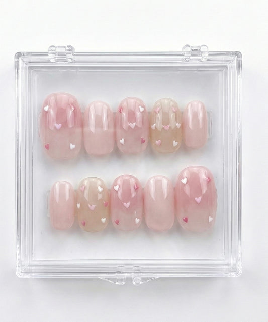 Sheer Pink Jelly Heart Press On Nails - Minimalist Valentine Art - Galentines Gift for Her - Lovecore Date Night - Custom Size Set - PN251212