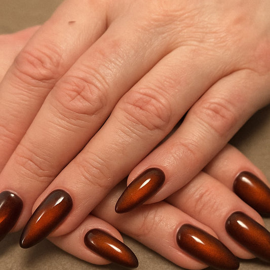 Orange Cat Eye Press On Nails - Burnt Orange Magnetic - Handmade Nails - Fall Luxury - Handmade Magnetic Nail Set - Custom Size Set - PN251129