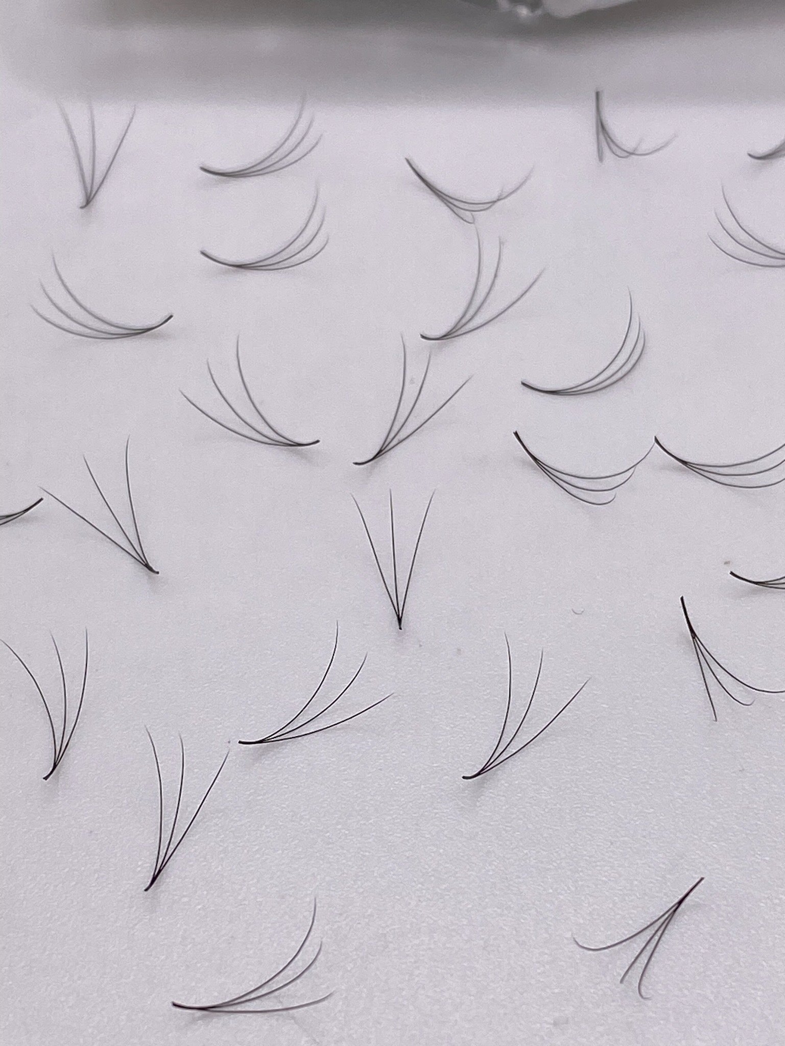 - Tiny, pointed base – wraps tightly around the natural lash for better retention