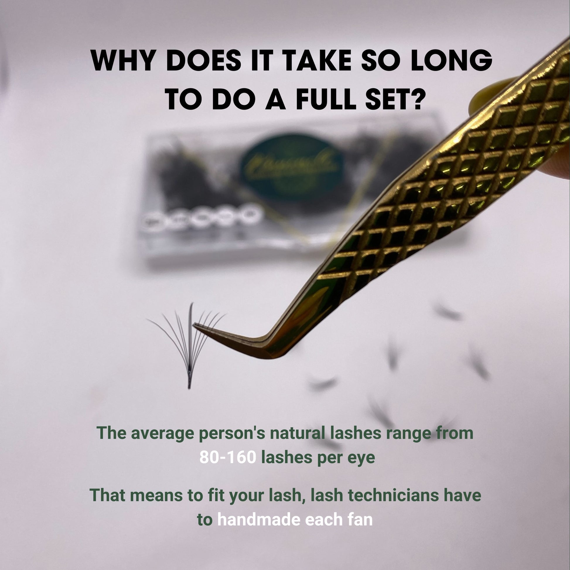 Effortless Wispy Lashes: Pre-made wispy fans with closed spikes and a volume base for quick and easy application, cutting your lash set creation time in half.