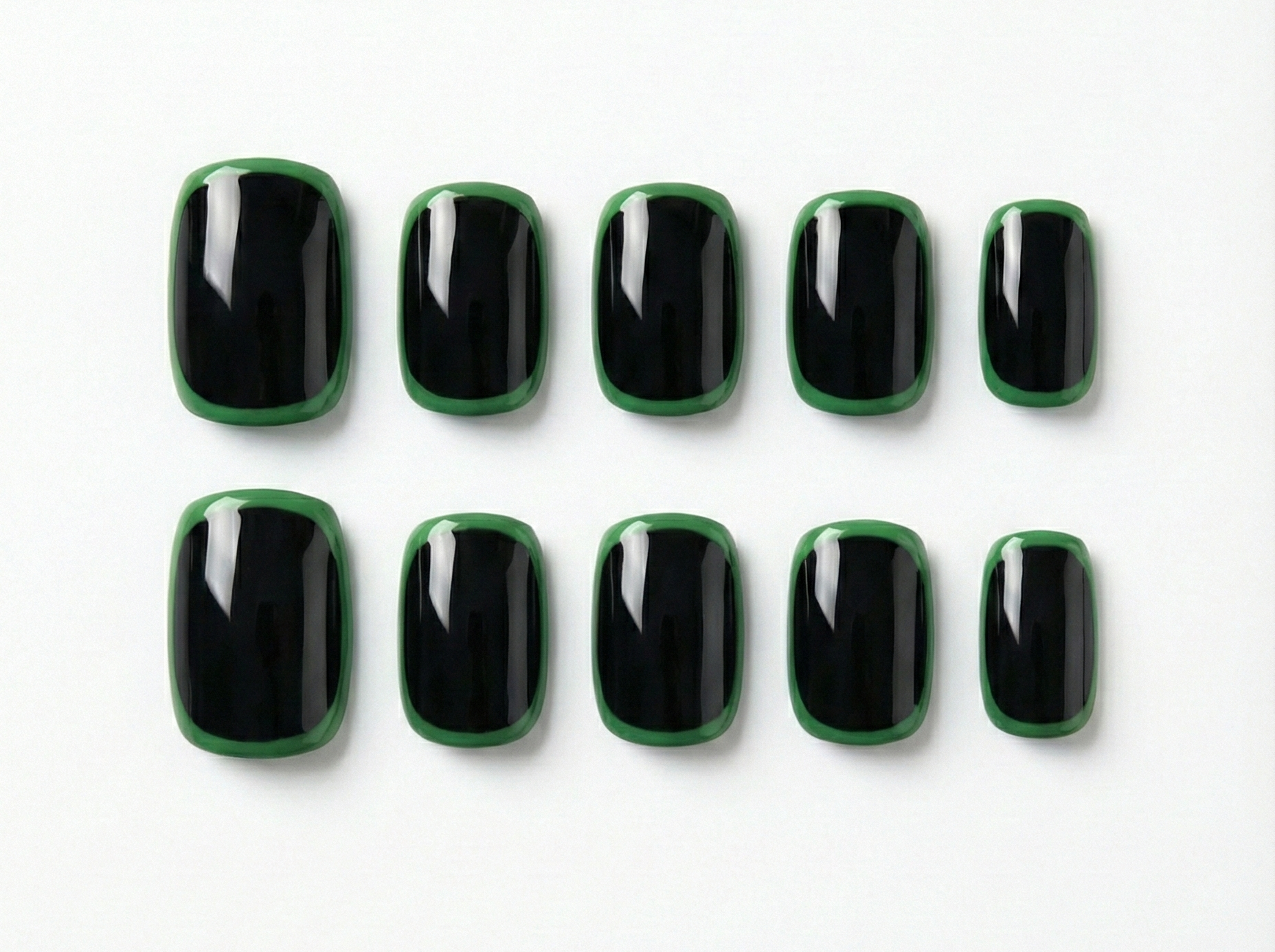 Black & Green Border Press On Nails – Minimalist Outline Framed Art - Modern Edgy Two Tone - Y2K Trendy Gel - Custom Size Set - PN251187