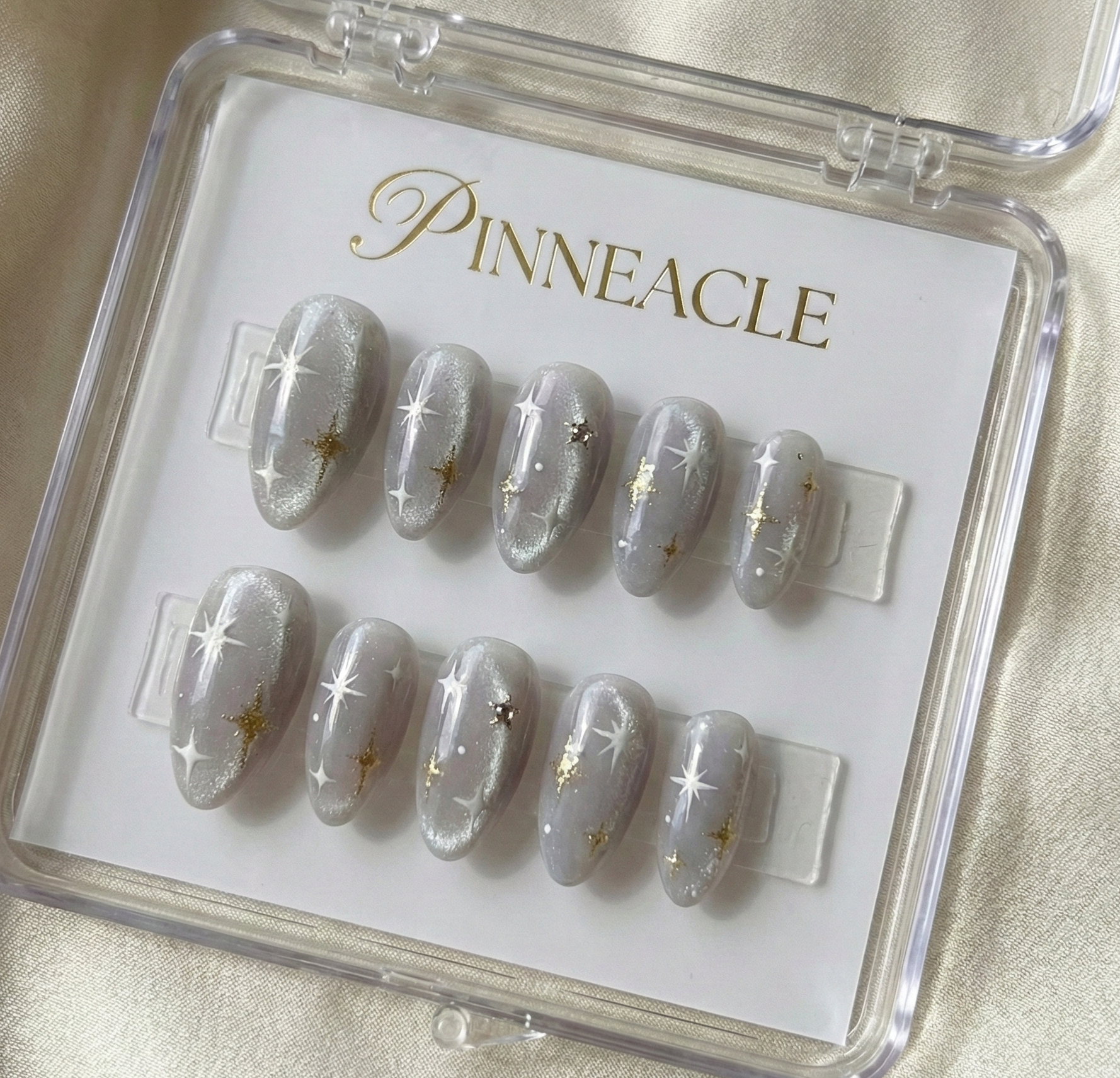 Silver Cat Eye Star Press On Nails - White Gold Celestial Art - Velvet Magnetic Shimmer - Dreamy Sparkle - Custom Size Set - PN251193