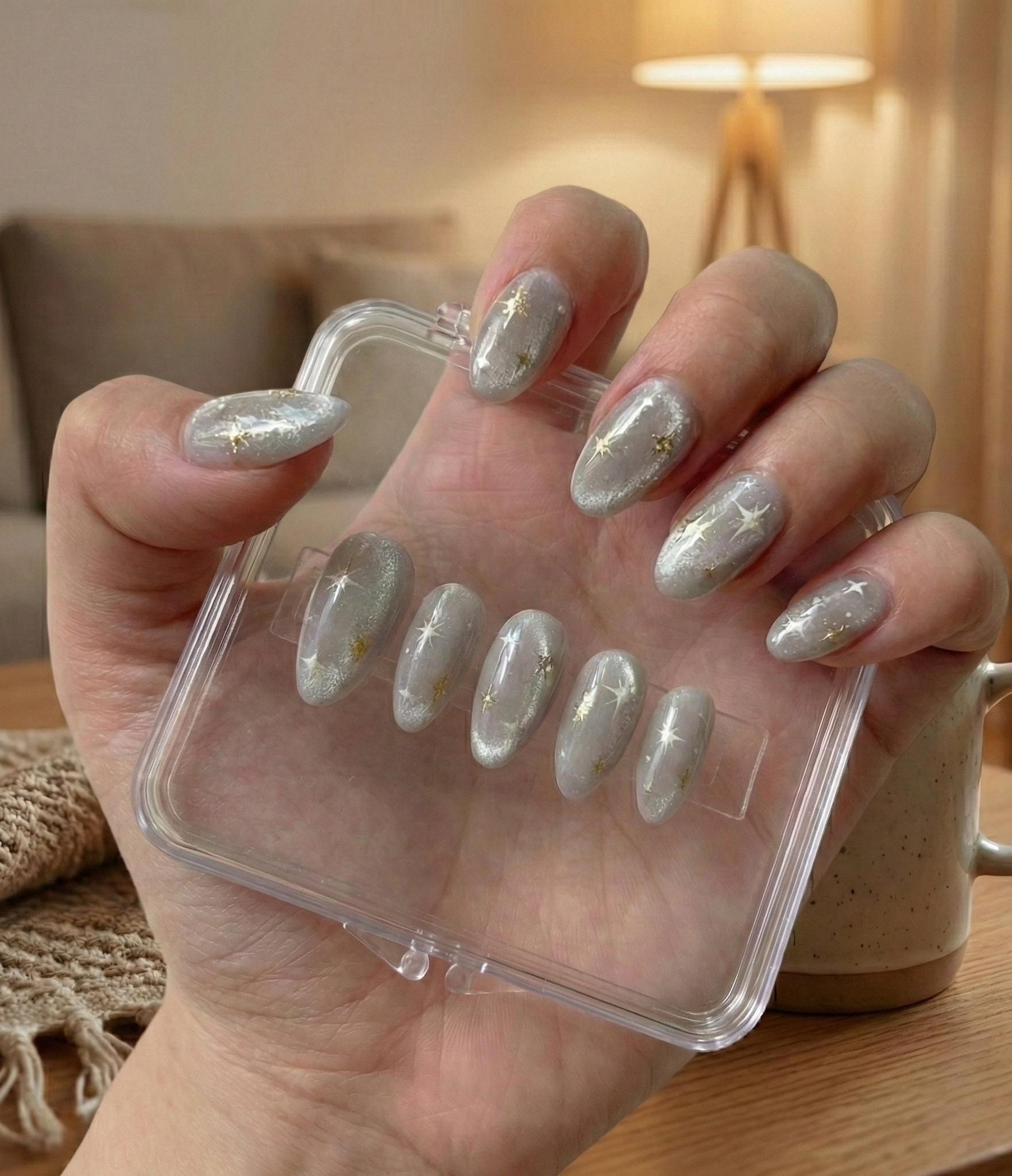 Drift into a daydream with the "Stardust Dreams" Celestial Set. This ethereal design captures the soft glow of a winter night. The base features a milky silver magnetic cat-eye finish that creates a soft, diffused "velvet" shimmer, looking like moonlight on snow.