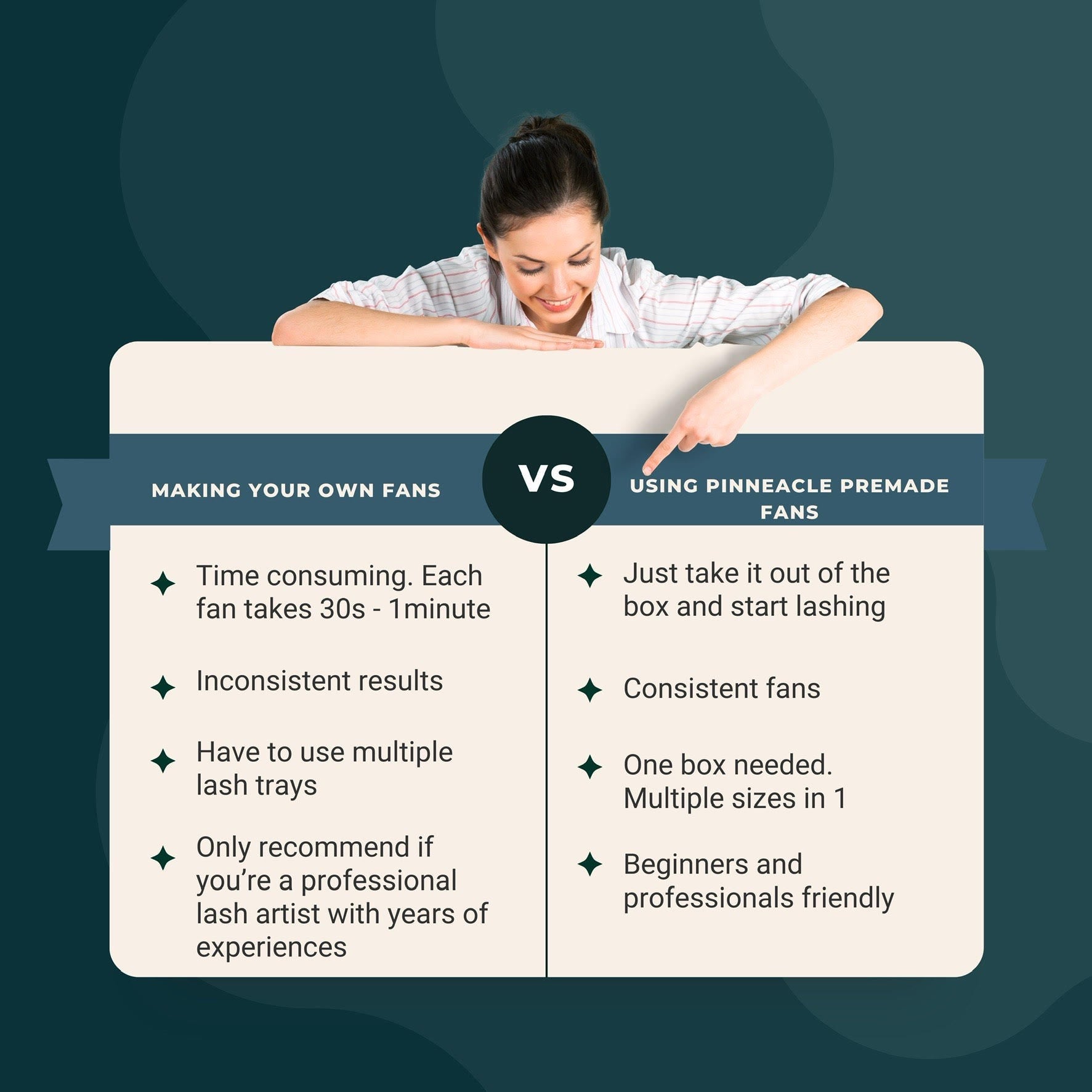 Our premade fans are ready to use, saving you valuable time and effort during each lash session.