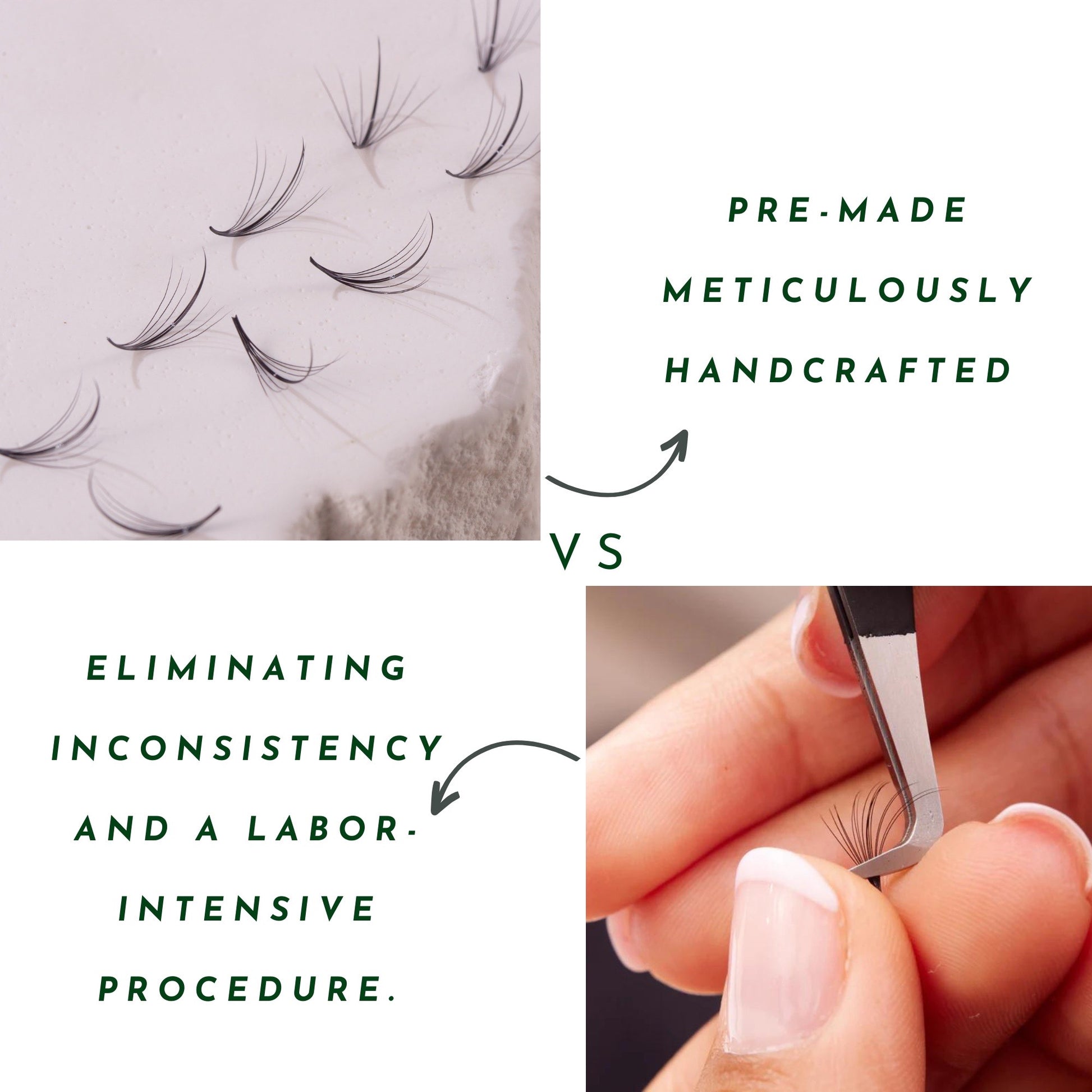 Elevate your lash extension business with our 5D Wispy Premade Volume Fans. Discover the balance between convenience, quality, and creativity, and be a part of our mission to celebrate women's beauty and support talented lash artists
